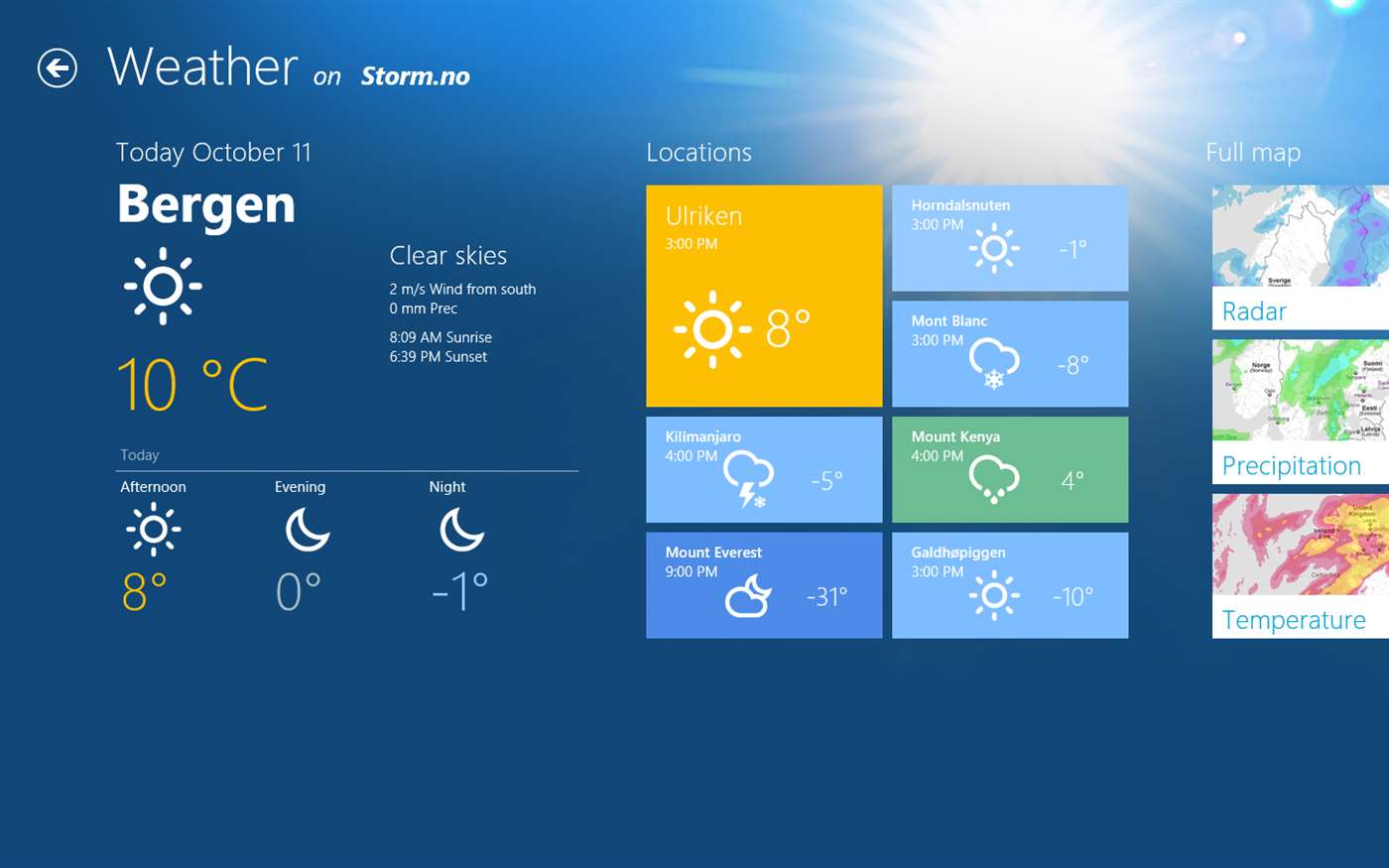 Welcome to the ultimate destination for Windows 10 users seeking an exceptional weather experience! Discover "Storm," a cutting-edge software developed by StormGeo, designed to empower you with real-time weather insights like never before. With its sleek interface and powerful features, Storm provides a seamless and immersive weather forecasting experience right at your fingertips. Stay ahead of the storm with accurate and up-to-the-minute weather information, including detailed radar imagery, severe weather alerts, and customizable forecasts tailored to your location. Whether you're a weather enthusiast, outdoor adventurer, or simply want to plan your day effectively, Storm is your go-to companion. Download Storm now and embark on a journey to unlock the full potential of weather forecasting on Windows 10.